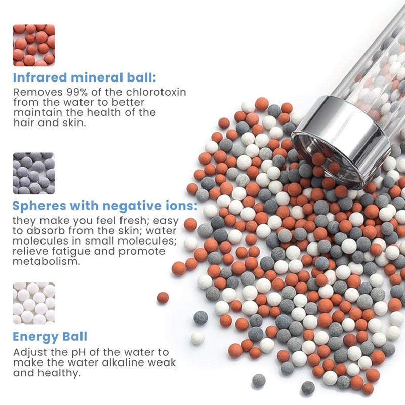 • Filtering System】Two kinds of stone beads and PP cotton filter element form a dual filter element system, Remove impurities in shower water, soften hard water,help contributing skin and hair smoother and softer.