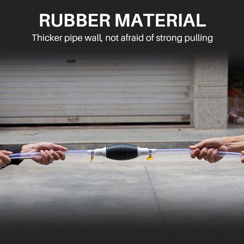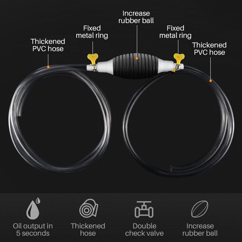Rubber hand pump that starts siphoning liquid flow quickly. 2 flexible Durable PVC transparent hoses provide easy reach into containers, petrol resistant, avoid corrosion.