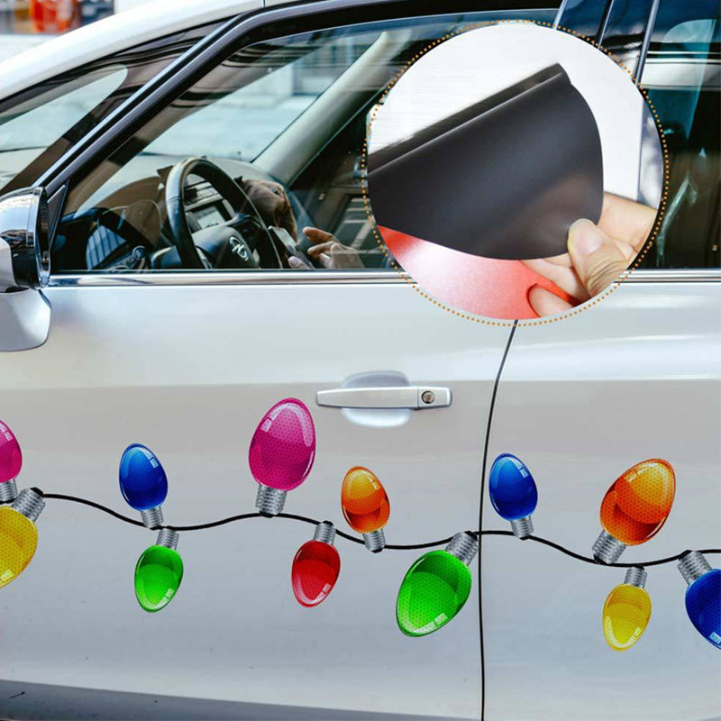 Colorful and Dazzling Magnet Stickers: Reflective Christmas light bulb car magnets, show off the true holiday spirit this winter. This magnetic sticker can be placed anywhere on your car!