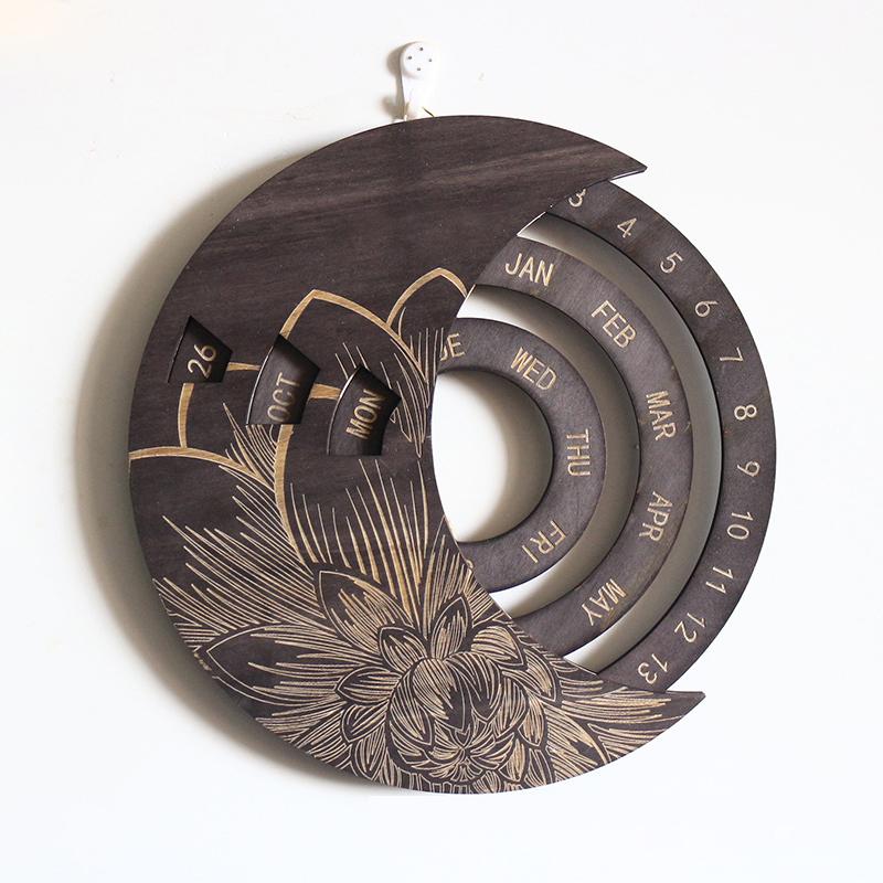 ECO-FRIENDLY MATERIAL: The perpetual calendar is made of natural basswood, recyclable and Eco-friendly; Exquisite engraved flower pattern makes it an art wall decor; There is an eyehook picture hanger on the back for easy hanging