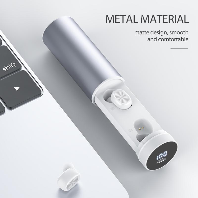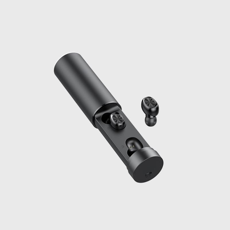 The package contains: left and right earphone + charging compartment + three pairs of ear caps (including the pair on the earphone) + charging cable + manual