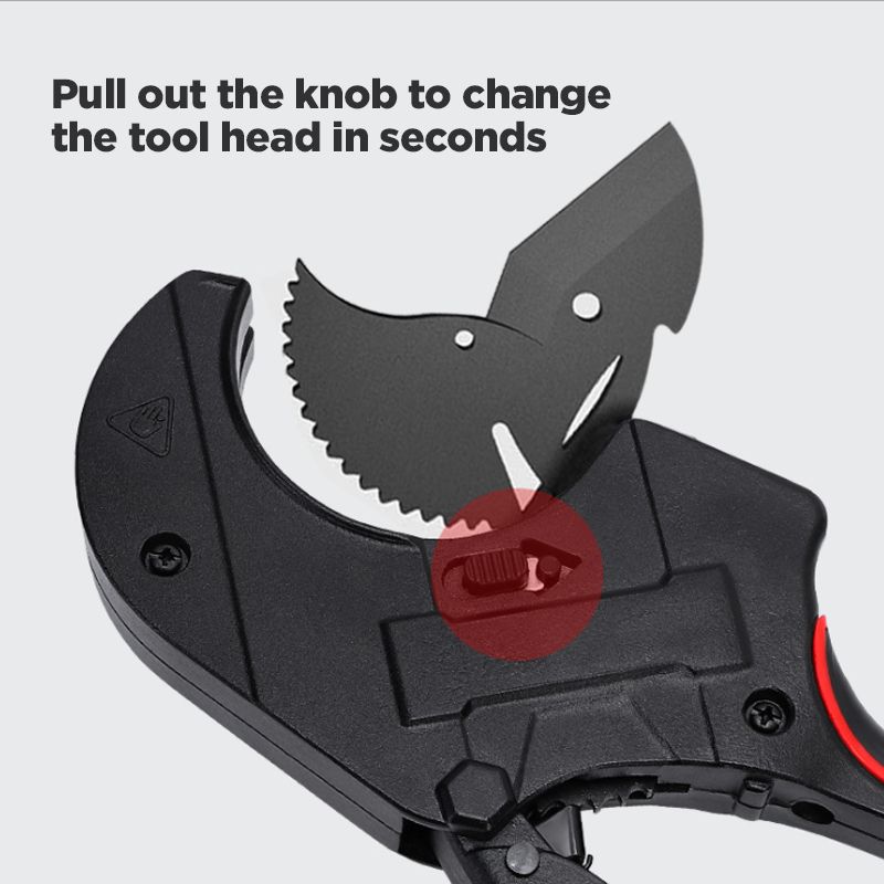 Tooth-shaped meshing feeds automatically and locks automatically when using plastic pipe cutter. The safety guarantee does not spring back, making each use safer. Every press the buckle down will tighten one grid.