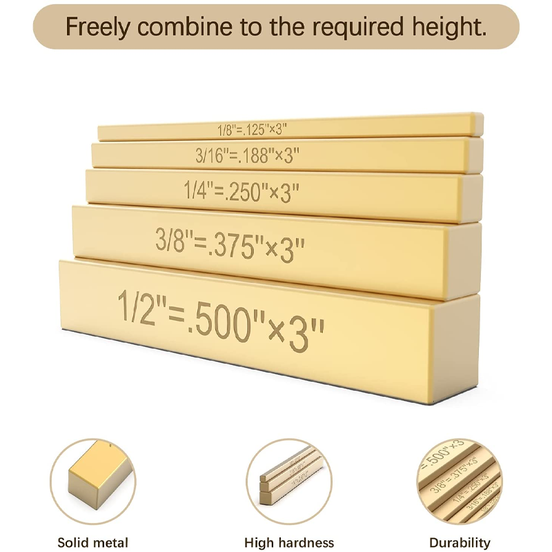 ๐[Accurate measurement]: Our brass set up gauge blocks are all 3 inches long, respectively: 1/8", 3/16", 1/4", 3/8", and 1/2" squared.Accuracy: ยฑ0.03mm (less than 2 mils=less than 0.05mm).