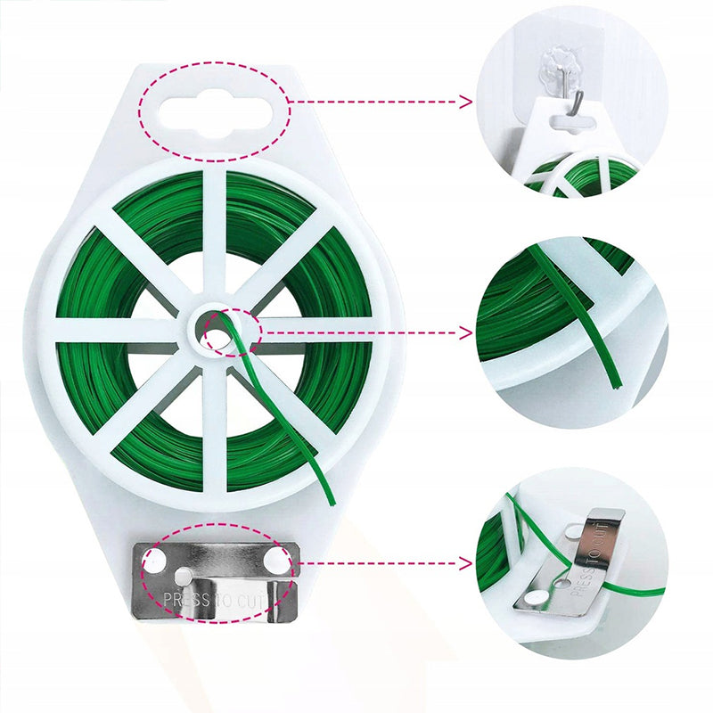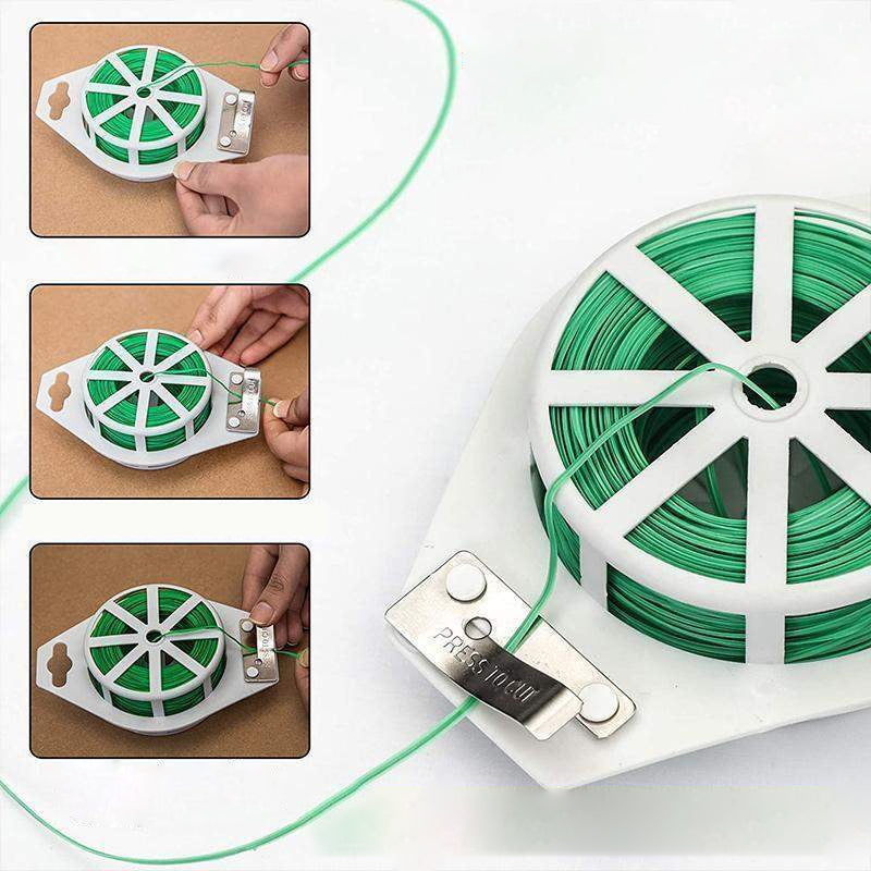Plant Tie Wire Spool With Cutter For Garden Yard Plant (Green)