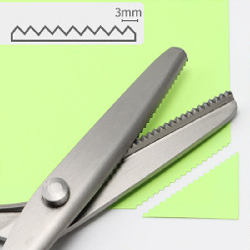 • āœ‚Ā MultifunctionĀ Scissors - A must have for your sewing kit.Ā The sharp blades are sawtooth-shaped instead of straight, leaving a zigzag pattern when cutting.Ā The sawtooth pattern can limit the length of frayed thread from unfinished fabric edges, minimizing damage.Ā Please note that there is some oil in the blades to prevent rusting.Ā Please wipe it clean before use.