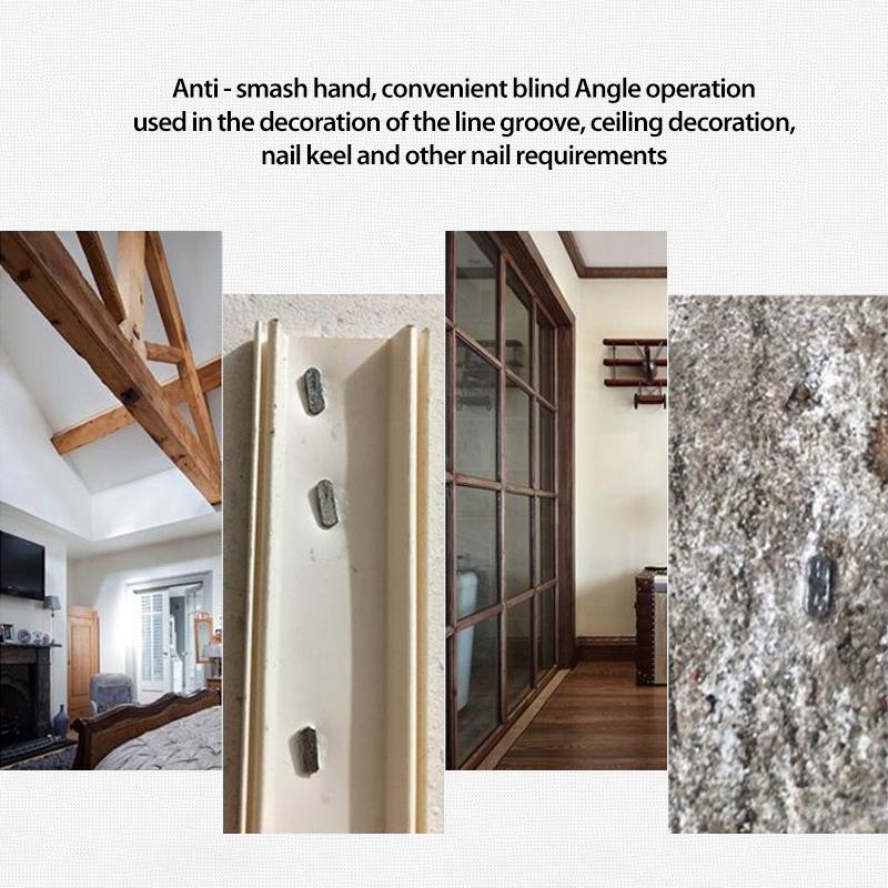 Mi-automatic cement nail device, dedicated to the concrete wall, brick wall. Exquisite small size, simple structure, easy to maintain, with thickened aluminum clip, heavy accuracy snap,b alloy steel tip. No need for pneumatic electric, with hammer operation, convenient and fast.