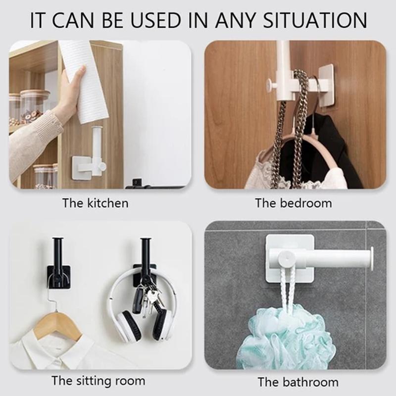 These hooks are suitable for multiple scenarios, living room, bedroom bathroom, office, kitchen, and others. It can be used to hang clothes, hats, satchels, paper towels, plastic wrap, etc. And can also be used for the toilet handle, curtain hanger, and door handle. The two can be used together to place chopping boards, pot covers, and other large items.
