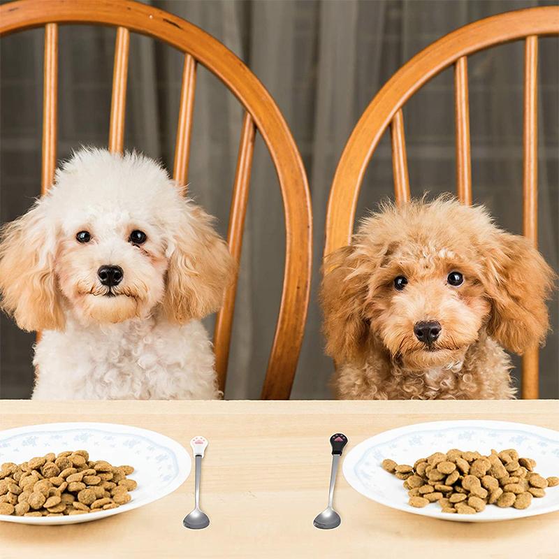 Delicate gifts: these pet stainless steel food spoons with cute cat claw patterns can be applied as delicate gifts for your cats and dogs, for daily serving and feeding, and you can share with your friends who have a pet.