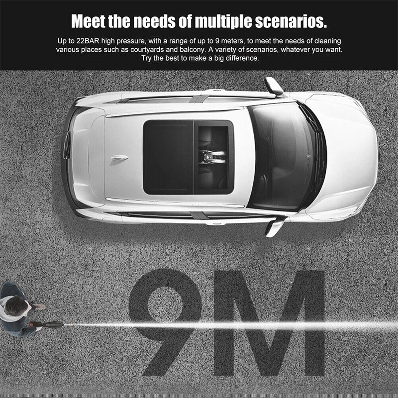 Cordless Pressure Washer takes portability and convenience into consideration, there is no power cable anymore, High-Capacity Battery Operated, allowing you to cleanall your outdoor spaces and gear, anytime, anywhere all your outdoor spaces and gear, anytime, anywhere.