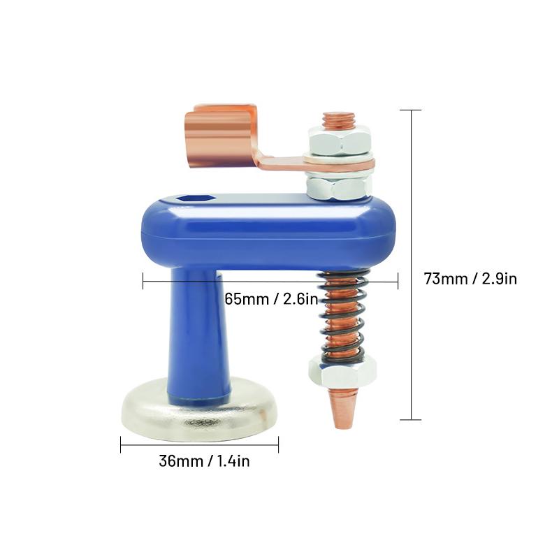 - Sometimes you're faced with a welding job that has limited options for ground points. This magnetic clamp is handy to have in such situations.You can stick in on a car body and not have to damage the paint. The clamp can also be attached to metal poles, struts, railings or the welding table.