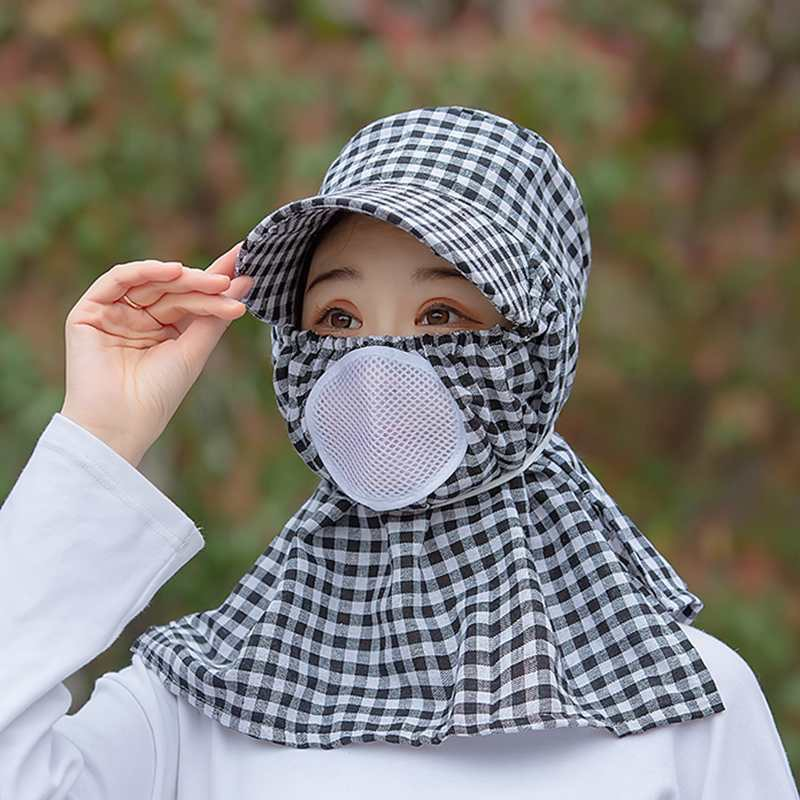 ✨UNIQUE DESIGN: Designed with a wide brim, the hat covers around neck for maximum sun protection; There is a way out from the back to let your hair out. The front part to replace masks for more dust prevention.
