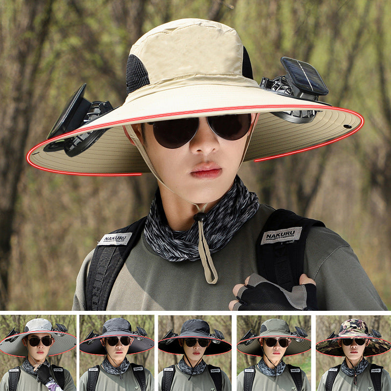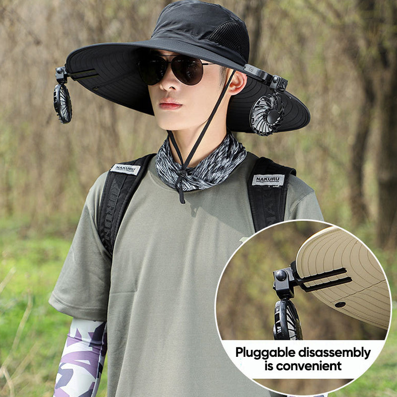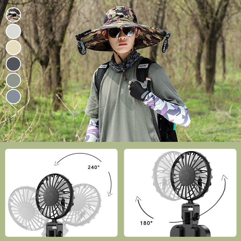 • 1* Wide Brim Solar Fan Outdoor Fishing Hat