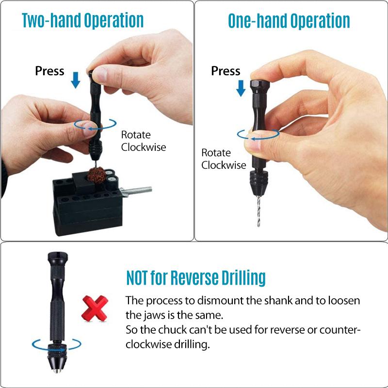 NOTICE - Please notice that the pin vise is a manual tool instead of a power tool and the twist drill bits can't be applied to drill in material as hard as steel, iron and stone.