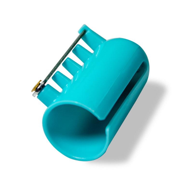 Knitting Yarn Guide is an ideal tool for weaving multi-color patterns of up to four colors. It is made of high-quality plastic which is durable and sturdy. The eyelet on the top of the thimble can be gently slid onto the knitting needle without knotting.