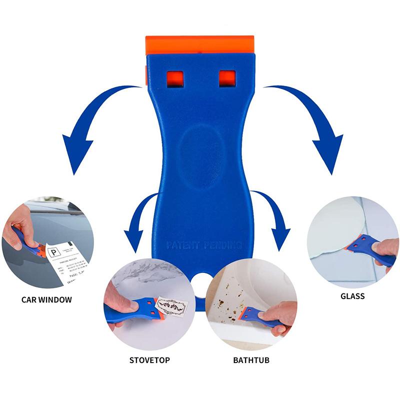 - Easy to Carry & Multi-purpose - Small enough to carry in pocket or toolkit, this is a very handy caulk scraper tool to have when doing the cleaning outside. Widely used in removing debris, glue, stickers, caulk, labels, decals from counter tops, stoves, appliances, metal, glass, etc. Save your valuable time by keeping the razor scraper tool kit in the kitchen, bathrooms, workshop, toolbox, office, car, boat, RV, motorcycle.