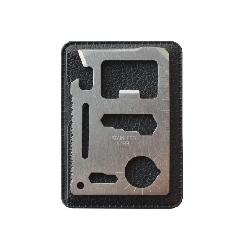 11 Functions include the following: Can opener / Bottle cap opener / 4-Position wrench / 2-Position wrench / Butterfly screw wrench / Direction ancillary wrench /