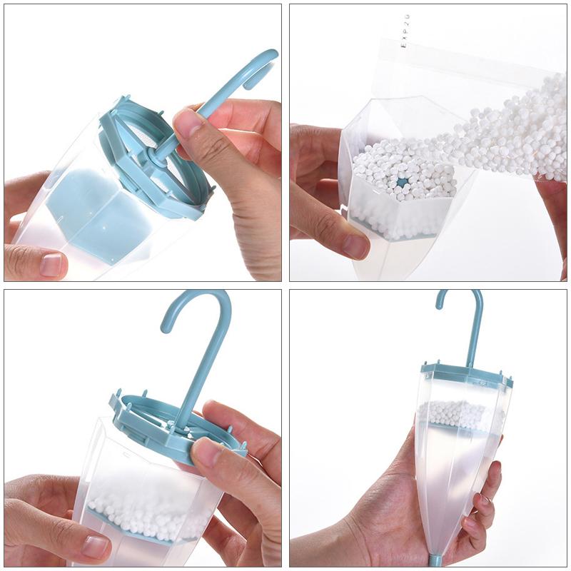 - Design: Umbrella dehumidification box effectively concentrates the moisture absorbed by the dehumidifier, will not be lost to the air, and can be hung in hangers, kitchens, bedrooms, etc.